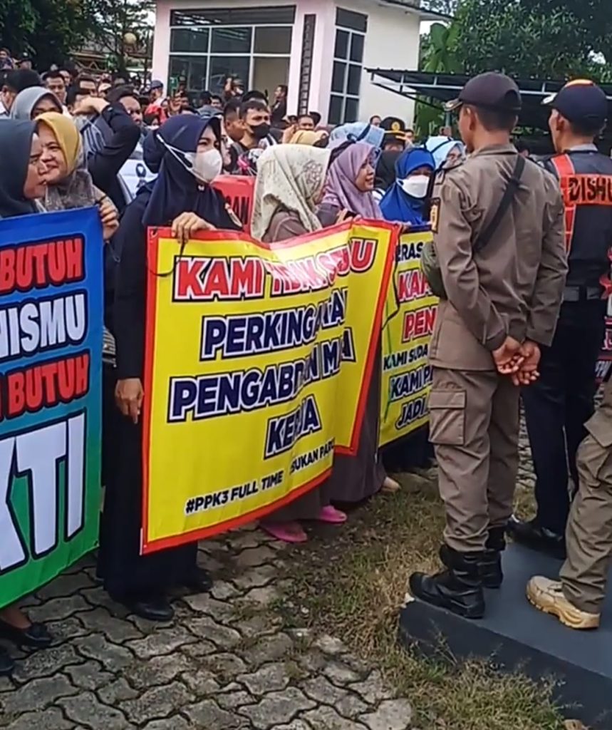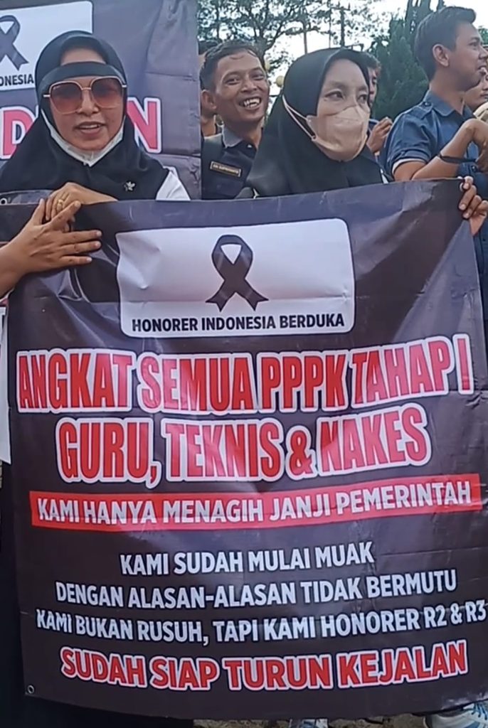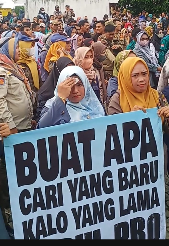 Aksi demo tersebut berorasi di halaman gedung DPRD Lampung Tengah Menuntut hak para honorer yang sudah mengabdi puluhan tahun sebagai tenaga honorer yang dijanjikan oleh pemerintah daerah akan diangkat belum ada realisasinya. Bahkan ada tenaga honorer yang mengabdi puluhan tahun hingga berusia 50 tahun lebih belum juga ada kejelasan untuk diangkat.