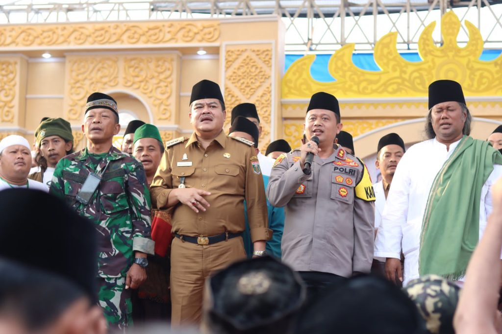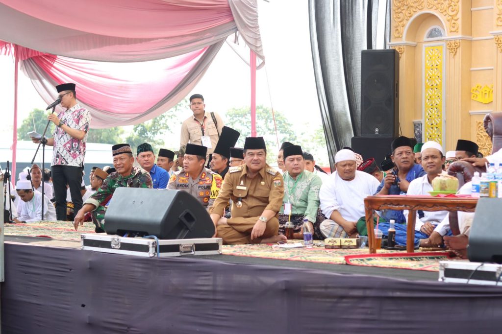 Lampung Tengah| Bupati Lampung Tengah Musa Ahmad mengahdiri acara Tabligh Akbar dan Sholawat Kebangsaan dalam rangka Haul Tuan Penghulu ulama Lampung Kabupaten Lampung Tengah di Kawasan Terminal Betan Subing pada hari Jumat 27 Oktober 2023.