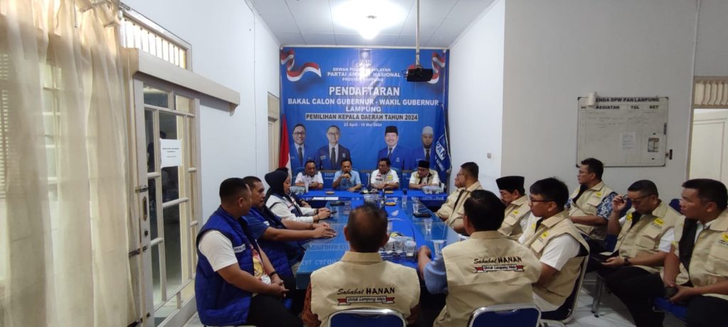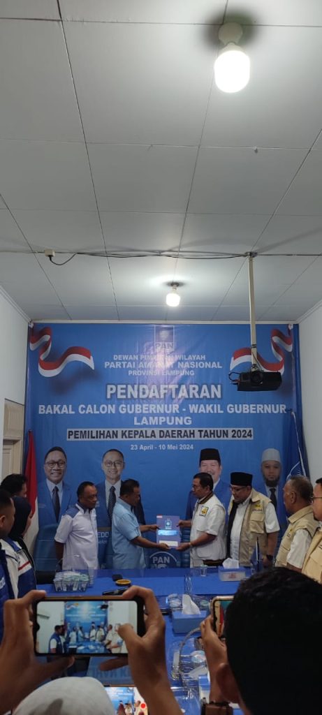 LAMPUNG | Bacalon Gubernur Lampung Hanan A. Rozak mendaftar sebagai Calon Gubernur Lampung dari Partai PAN di Sekretariat DPW PAN Provinsi Lampung, Rabu pagi (24/04/2024)