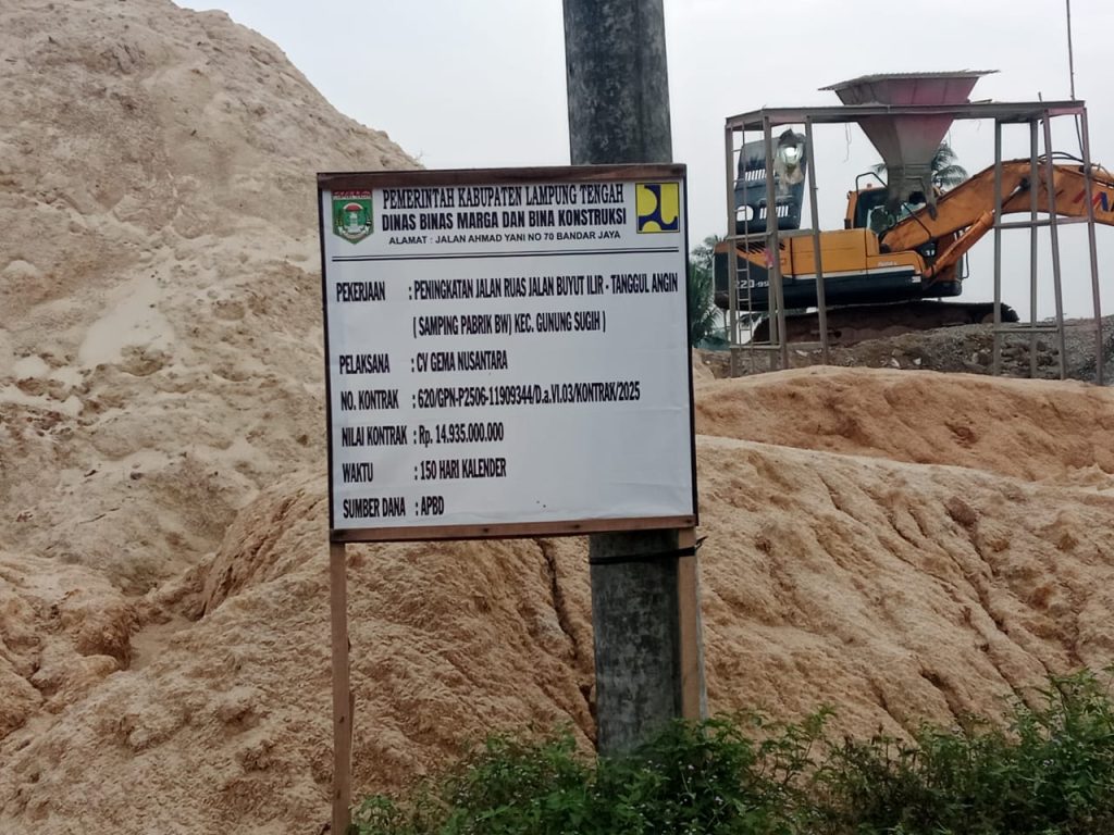 Lampung Tengah – Hasil penelusuran dan peliputan media yang tergabung dalam wadah PWRI Lampung Tengah, pekerjaan Pembangunan peningkatan jalan ruas jalan (rigid beton) anggaran APBD Pemerintah daerah kabupaten Lampung Tengah tahun 2025 yang bernilai kontrak Rp. 14.935.000.000,00 di Buyut ilir – Tanggul Angin (samping pabrik BW) Kecamatan Gunung Sugih Lampung Tengah sudah retak dan patah akibat pengerjaanya diduga tidak sesuai bestek.
