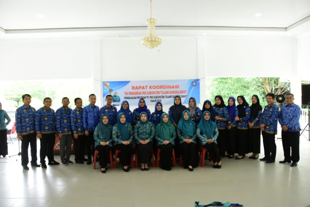 Diskominfo Tubaba| Ketua Tim Penggerak Pemberdayaan dan Kesejahteraan Keluarga (TP PKK) Kabupaten Tulangbawang Barat (Tubaba) Dra. Hanita Firsada, M.Si. memimpin jalannya Rapat Koordinasi (Rakor) TP PKK, yang berlangsung di Aula Rapat Rumah Dinas Bupati setempat. Rabu (17/01/2024).