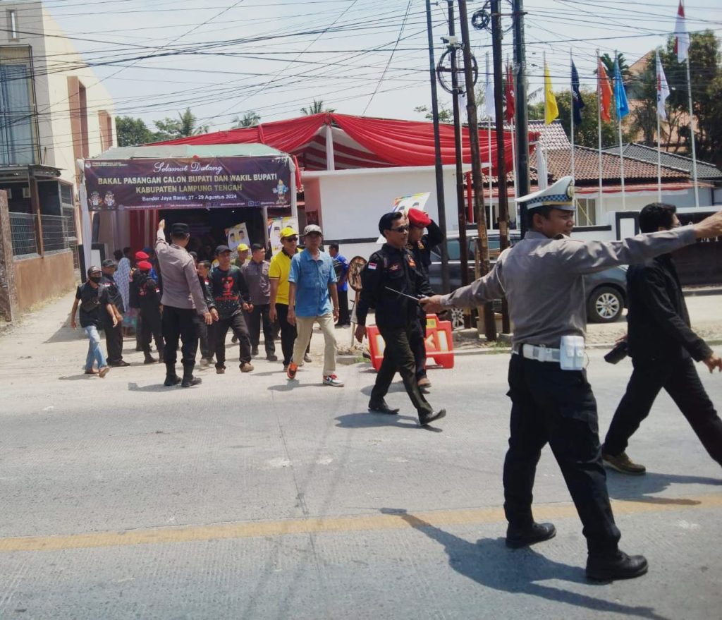 Kepada awak media, Kapolres Lampung Tengah AKBP Andik Purnomo Sigit mengatakan bahwa puluhan personel yang diturunkan akan bertugas melakukan pengamanan jalannya pendaftaran calon Bupati dan Wakil Bupati Lampung Tengah yang dilaksanakan dari tanggal 27 sampai 29 Agustus 2024.