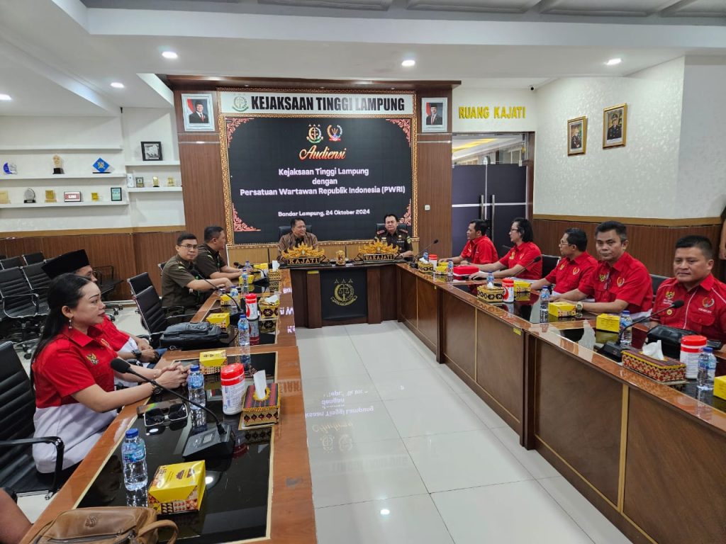 Kedatangan Ketua DPD PWRI Lampung beserta beberapa pengurus DPD dan DPC PWRI Lampung disambut langsung oleh Kepala Kejaksaan Tinggi (Kajati) Lampung Dr Kuntadi S.H., M.H., Wakajati I Gede Ngurah Sriada S.H., M.H., Kasi Penkum Ricky Ramadhan S.H., M.H., Koordinator Fariando Rusmand S.H., M.H., diruang pertemuan Kejati Lampung.