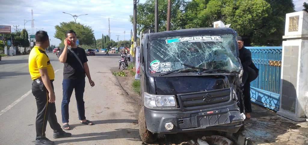 Gunung Sugih| Kejadian Kecelakaan tunggal Mobil angkutan barang menumbur pohon di pinggir trotoar pagi Sabtu, 20 Januari 2024 Pukul 04.00 wib tidak ada korban hanya Andi usia kisaran (17 th) yang mendampingi Hengki sopir pelipis matanya luka ringan akibat benturan dan terkana kaca mobil. Peristiwa kecelakaan tersebut mengagetkan warga sekitar lingkungan dan sempat terekam CCTV warung Pak Jay ketika awak media meminta keterangan di lokasi kejadian.