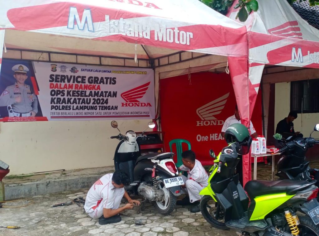 “Dalam rangka Ops Keselamatan Krakatau 2024, Sat Lantas Polres Lampung Tengah mengadakan kegiatan service gratis di Samsat Gunung Sugih Lampung Tengah, ” jelas IPTU Wahyu.