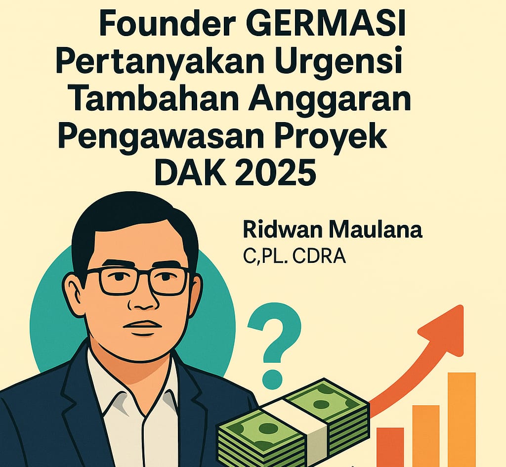 Founder GERMASI, Ridwan Maulana C.PL., CDRA, menegaskan bahwa anggaran yang ada saat ini sejatinya cukup untuk pelaksanaan pekerjaan, perencanaan, dan pengawasan, terlebih jika dilaksanakan melalui metode pengadaan e-Katalog.