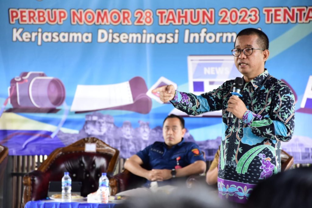 Dia melanjutkan, Peraturan Bupati Nomor 28 Tahun 2023 lebih menitik-beratkan pada pedoman penyebarluasan informasi melalui kerjasama, khususnya dengan lembaga Pers yang profesional dan berkompeten, sehingga mampu serta dapat berperan sebagai mitra strategis pemerintah dalam menyampaikan informasi kepada publik sesuai dengan platform masing-masing media yang dimiliki.