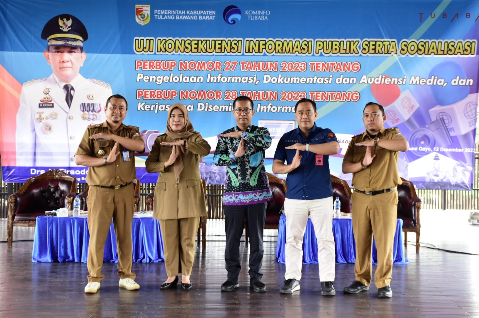 Tulang bawang barat| Penjabat (Pj) Bupati Tulang Bawang Barat (Tubaba), Drs. M Firsada, M.Si., diwakili Asisten Bidang Pemerintahan dan Kesejahteraan Rakyat Kabupaten Tubaba Dra. Bayana,M.Si., Membuka acara Uji Konsekuensi Informasi Publik Serta Sosialisasi Peraturan Bupati (Perbup) No 27 Tahun 2023 tentang Pengelolaan Informasi, Dokumentasi dan Audensi Media dan Perbup Nomor 28 Tahun 2023 Tentang Kerja Sama Dimensi Informasi.