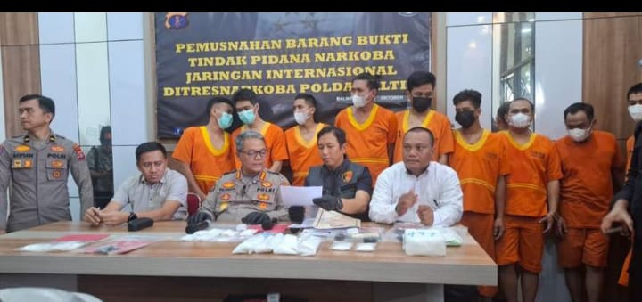 Dari pengungkapan tersebut, polisi mengamankan 10 tersangka beserta barang bukti narkotika jenis sabu-sabu seberat total 2.692 gram atau 2,69 kilogram.