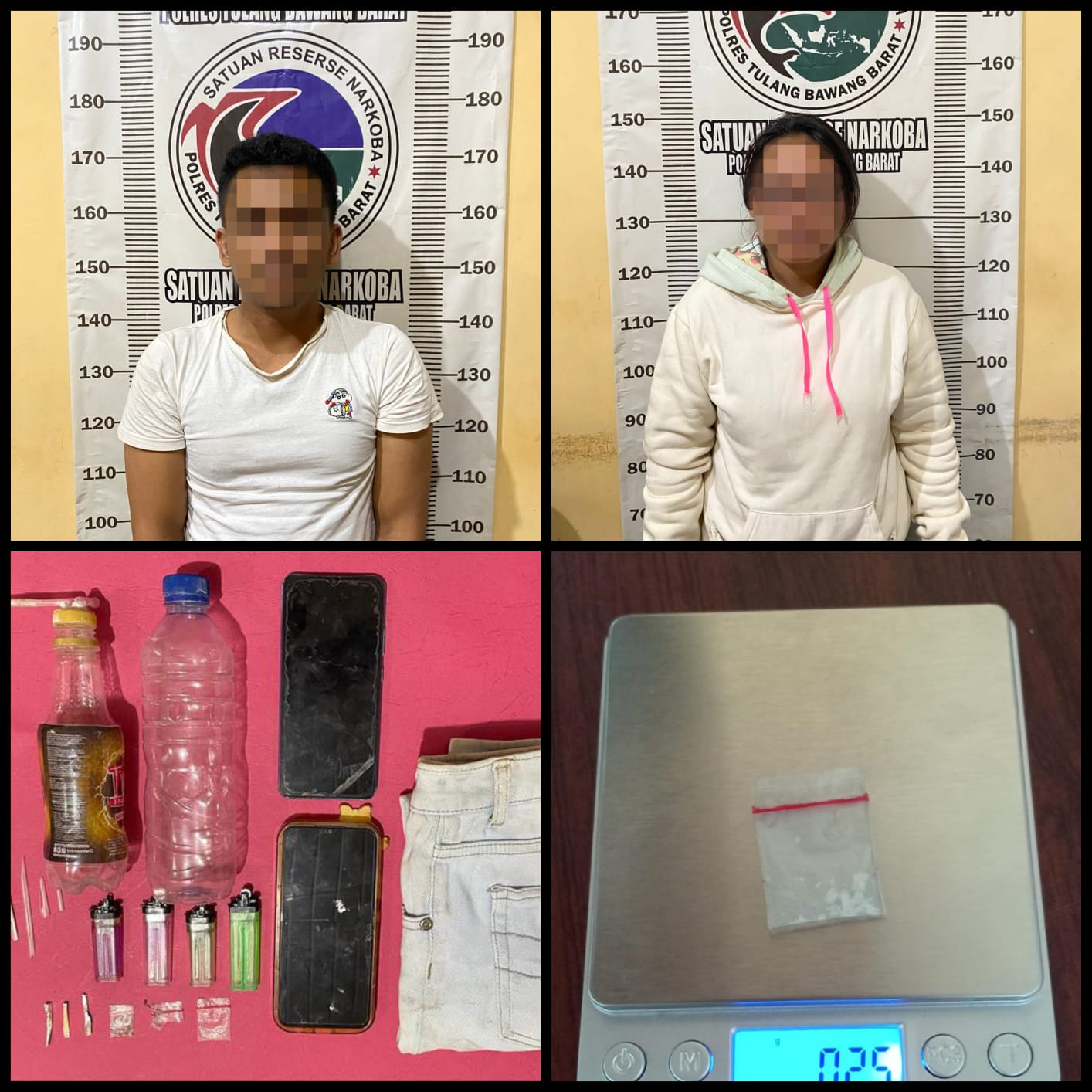 Tulang Bawang Barat| Tim Opsnal Satresnarkoba Polres Tulang Bawang Barat mengamankan sepasang pria dan wanita pelaku penyalahgunaan narkotika jenis sabu-sabu di Tiyuh Candra Jaya Kec. Tulang Bawang Tengah Kab. Tulang Bawang Barat.