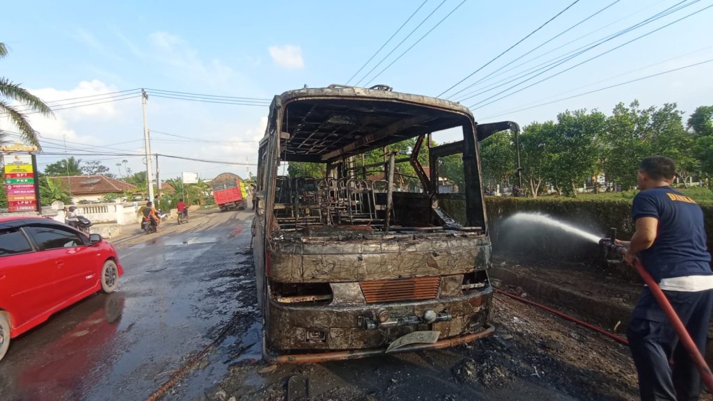 Tulang bawang barat | Polisi Polres Tulang Bawang Barat mengungkap penyebab bus Antar Kota Dalam Provinsi (AKDP) yang terbakar di Jalan lintas Tiyuh Murni Jaya Kec.Tumijajar Kabupaten Tulang Bawang Barat, Rabu (20/12/2023) sore.