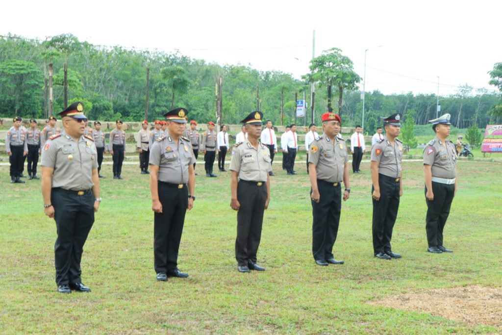 Kapolres Tulang Bawang Barat AKBP Ndaru Istimawan, S.I.K. memimpin upacara diikuti pejabat utama, perwira dan bintara di lingkungan Polres bertempat di halaman Mako Polres Tulang Bawang Barat.