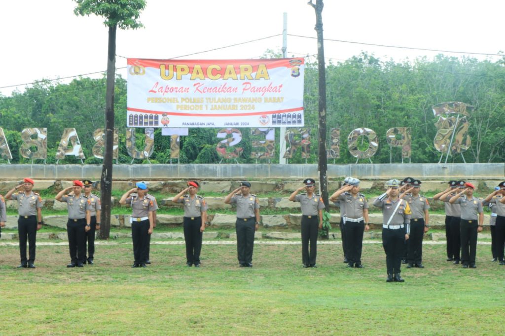 Sebanyak 12 Perwira dan 17 Bintara di lingkungan Polres Tulang Bawang Barat mendapat kenaikan pangkat setingkat lebih tinggi TMT 1 Januari 2024 dari Akp ke Kompol 1 personel, Iptu ke AKP 2 personel, dari Ipda Ke Iptu 9 personel, Aipda ke Aiptu 3 personel, Briptu ke Brigpol 10 personel dan Bripda ke Briptu 2 personel.