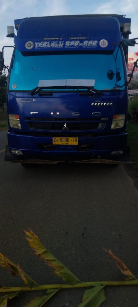 Kedua kendaraan tersebut masing-masing bernomor polisi Z 9000 ZU dan Z 9555 YB. Berdasarkan keterangan di lapangan, truk dengan nomor polisi Z 9000 ZU dikemudikan oleh Restu, membawa 18,8 meter kubik kayu bangkirai dengan dokumen izin yang disebut berasal dari PT. Farhan Fadillah Lestari, dan tujuan pengiriman ke Pulau Jawa.