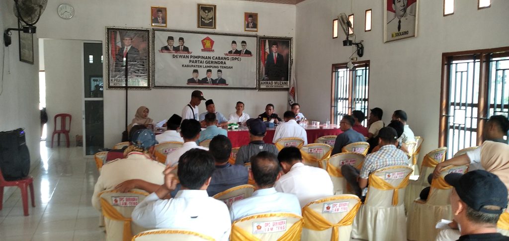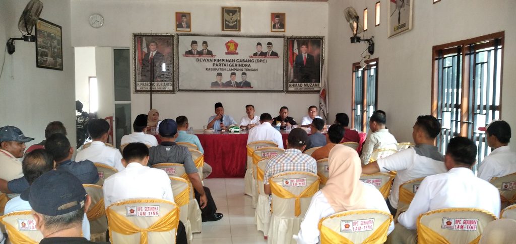 Lampung Tengah-DGNews| Agenda rapat koordinasi Bapilu Partai Gerindra yang dihadiri oleh pengurus Bapilu dan Tim Bapilu se Lampung Tengah Senin (25/12/2023) di kantor DPC Gerindra Gunung Sugih Lampung Tengah di pimpin oleh H. Zainudin, SE, MM, MH membahas tentang persiapan tim Bapilu dalam pelaksanaan pemilu Pilpres, Pileg 2024 dan pemberian arahan serta pemantapan kinerja Bapilu.