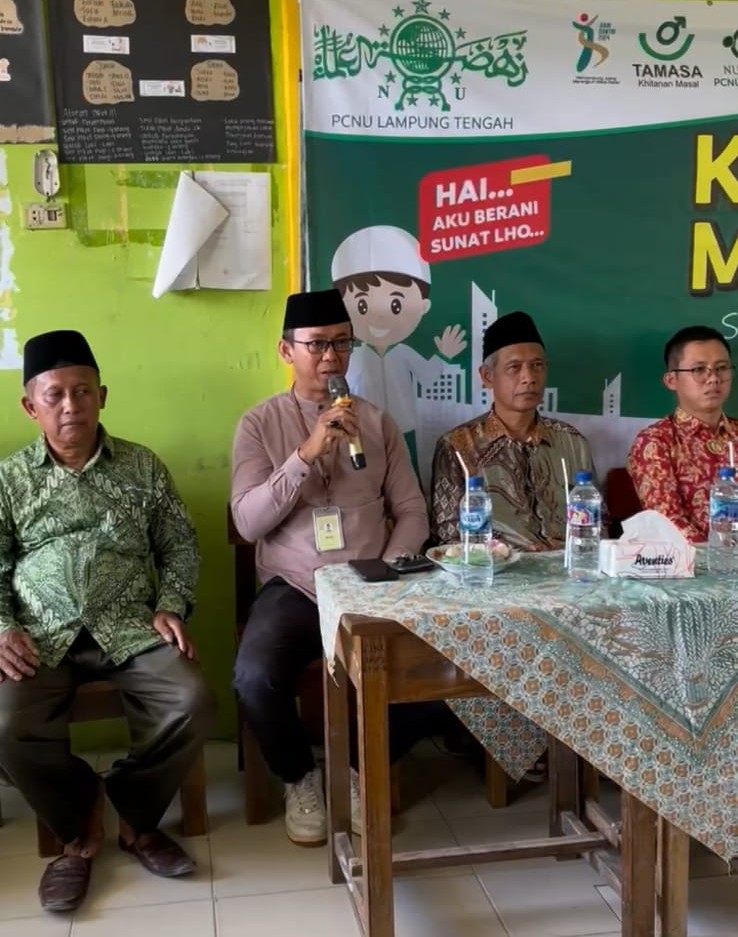 Pubian – Acara sunatan masal yang di selenggarakan oleh RS Mitra Mulia Husada (MMH), LazisNu dan PPNI di Gedung MWC NU Desa Payung Rejo Kecamatan Pubian dalam rangka menyongsong hari santri Nasional. Peserta sunatan massal tersebut diikuti sebanyak 30 anak warga desa payung rejo kecamatan Pubian, minggu (20/10/2024).