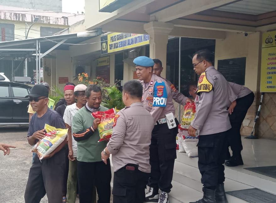 Lampung Tengah| Menyambut Bulan Suci Ramadhan 1445 H, jajaran Polsek Terbanggi Besar, Polres Lampung Tengah, Polda Lampung bagi bagi beras kepada masyarakat membutukan di kawasan Plaza Bandar Jaya. Senin (11/3/24)