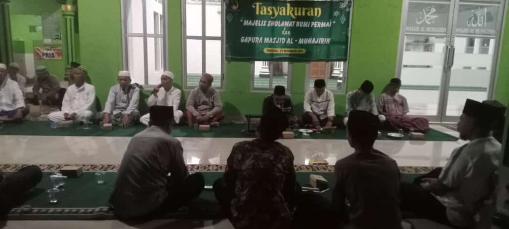 Ketika Bapak Ropli Ketua Panitia Tasyakuran ditemui awak media dirgantara news, menyampaikan bahwa acara tasyakuran tersebut terselenggara atas dukungan warga lingkungan Bumi Permai dengan tema Tasyakuran Majelis sholawat Bumi Permai dan Gapura Masjid Al – Muhajirin”, Jelasnya