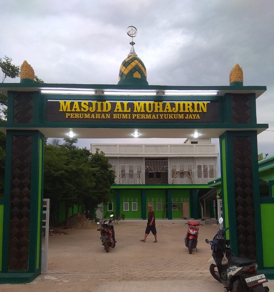 Pembangunan Gapura Masjid Al – Muhajirin tersebut merupakan bantuan hibah tempat ibadah dari pemerintah daerah lampung tengah sebesar Rp. 75.000.000,- yang diperuntukan untuk pembagunan Gapura dan pengecatan pagar serta pengecatan gedung TPA Al-Muhajirin.