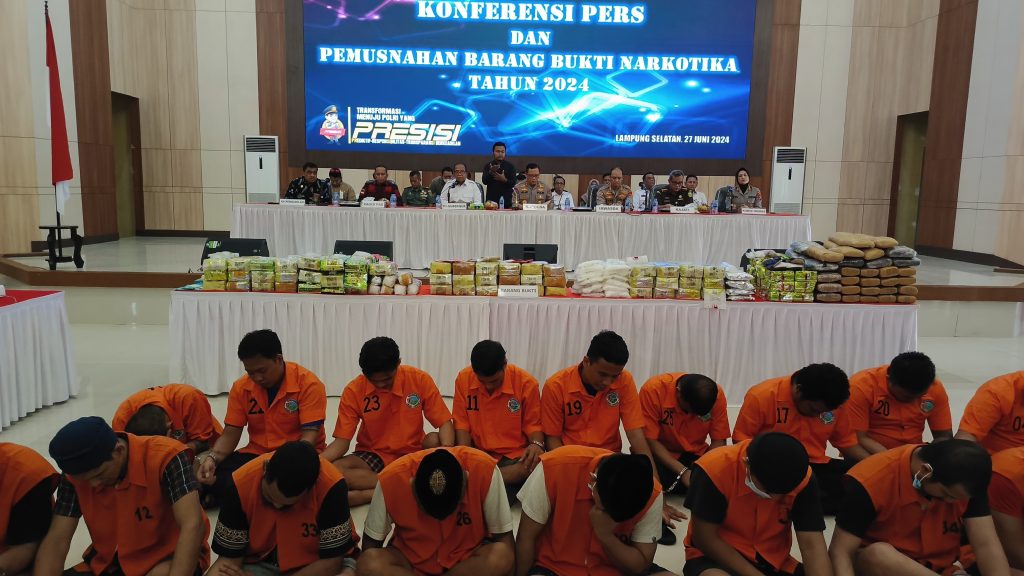 “Polda Lampung dan jajaran mengungkap 19 kasus narkoba dan menangkap 49 tersangka. Kasus-kasus ini berasal dari 4 jaringan narkoba berbeda,” katanya, Kamis (27/6/2024).