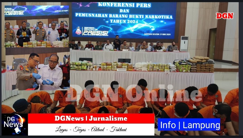 Lampung – DGNews | 4 jaringan narkoba diungkap Direktorat Reserse Narkoba Polda Lampung selama Januari hingga Mei 2024. Dalam pengungkapan ini, sebanyak 147 kilogram sabu-sabu, 56 kilogram ganja dari 49 tersangka diamankan.
