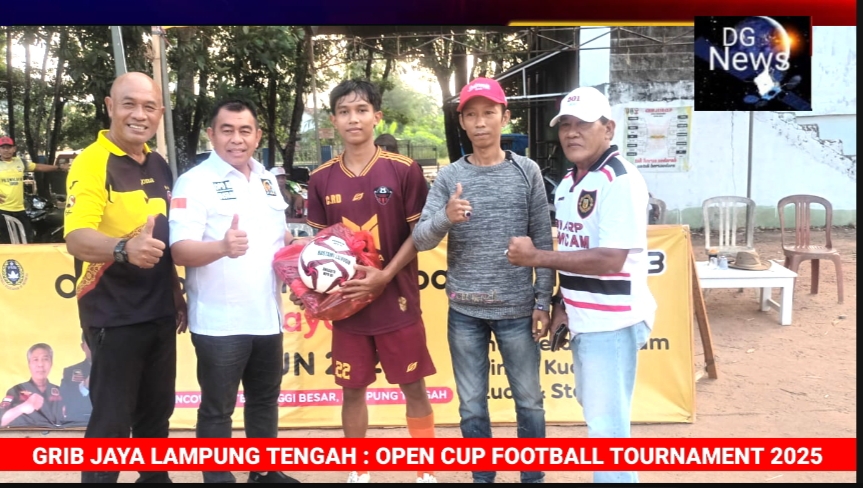 DGNews – Lampung Tengah | Grib jaya Lampung Tengah menyelenggarakan Open Cup Football 2025 merebutkan piala Grib Jaya Cup 2025 dan uang pembinaan total 30 juta rupiah yang di selenggarakan dilapangan Poncowati kecamatan Terbanggi Besar Lampung Tengah. Turnamen open cup football tersebut dibuka dan dimulai pertandingan sejak 15 juli 2025 yang dikuti oleh 30 club sepak bola dari tiap masing masing kecamatan kabupaten Lampung Tengah dan turut meramaikan juga Club Team tamu dari Palembang.