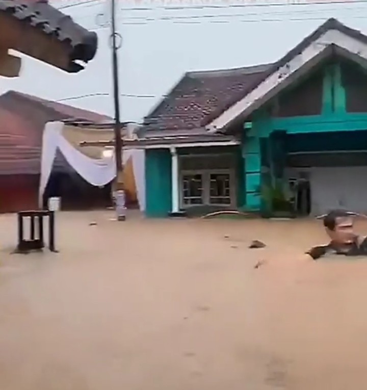 Aipda Firmansyah petugas Satlantas Polres Lampung Selatan, dari lokasi melaporkan terputusnya arus lalulintas karena banjir yang menggenangi jalan akibat luapan sungai Way Kandis.