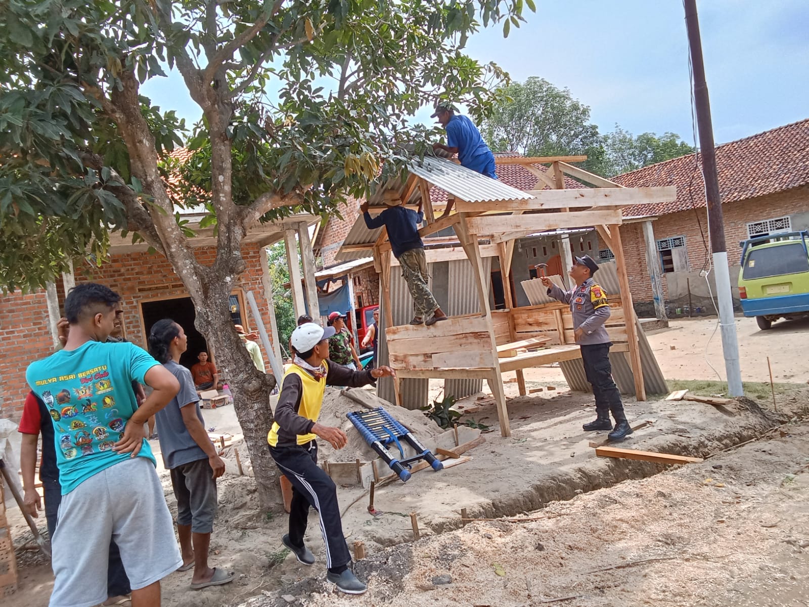 Tulang bawang barat | Dalam rangka meningkatkan keamanan, ketentraman, dan kenyamanan lingkungan, Bhabinkamtibmas Polsek Tulang Bawang Tengah Polres Tulang Bawang Barat Polda Lampung, Aipda Ahmadin, bersama warga, secara swadaya dan bergotong-royong membangun dan mendirikan Pos Kamling di tiyuh Mekar asri Kecamatan Tulang Bawang Tengah Kabupaten Tulang Bawang Barat, Kamis, (30/11/2023) Pagi.