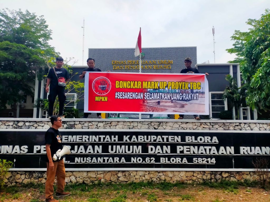 Blora – Jawa Tengah| Diduga terjadi mark up hingga miliaran pada proyek Taman Budaya Cepu (TBC), puluhan massa yang tergabung dalam Masyarakat Pengawas Keuangan Negara (MPKN) geruduk kantor Dinas Pekerjaan Umum Dan Penataan Ruang (PUPR) Kabupaten Blora, Senin (27/11/2023).