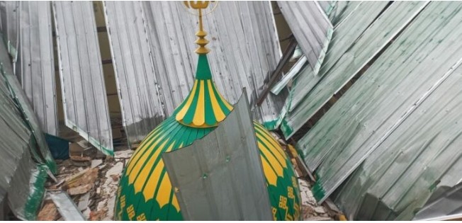Lampung Tengah | Bencana menimpa masjid Jami Al falah yang terletak di kampung Buyut Udik Kecamatan Gunung Sugih Lampung Tengah ketika sedang hujan disertai angin. Kejadian tersebut senin, 01 maret 2024 sekitar pukul 03 :15 (WIB) saat warga hendak melakukan ibadah sholat ashar. Peristiwa tersebut tidak ada korban dan kondisi bangunan atap dan kubah ambrol hingga kondisi dalam masjid yang sehari harinya dipakai warga setempat untuk sholat berjamaah tidak dapat di gunakan aktifitas.