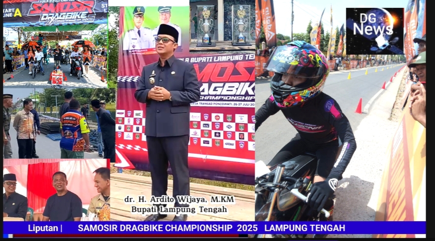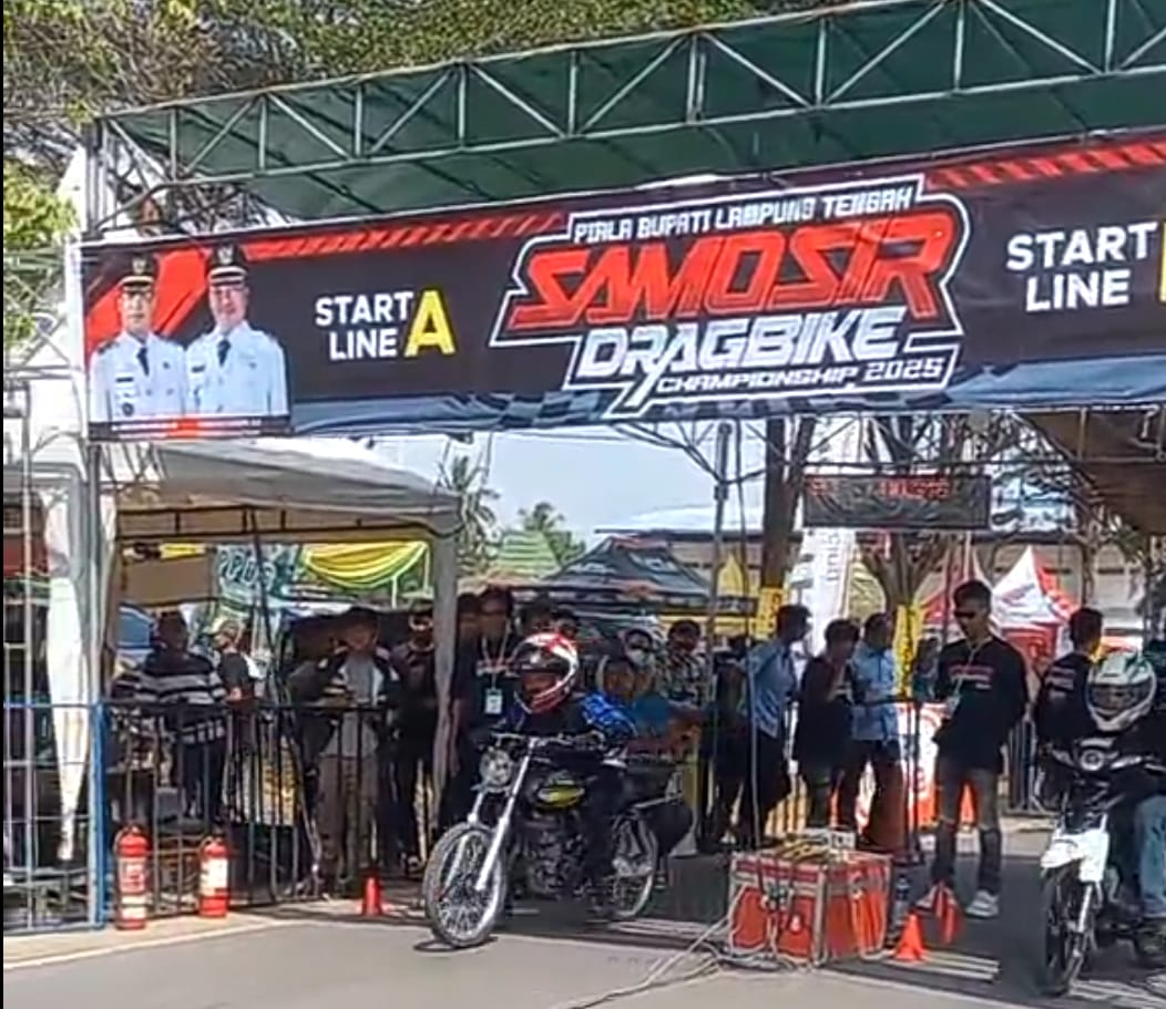 DGNews, Lampung Tengah – Bupati Lampung Tengah Dr. Ardito Wijaya, MM, secara resmi membuka gelaran Samosir Dragbike Championship 2025 di kawasan Poncowati, Lampung Tengah. Acara yang dibuka pada Sabtu 26 juli 2025 ini dihadiri oleh Ketua IMI Lampung Tengah, Natalis Sinaga, beserta ratusan peserta dan penonton pecinta balap motor.