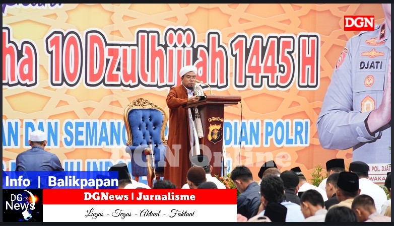 Balikpapan – DGNews | Dalam rangka merayakan Hari Raya Idul Adha 1445 H dengan penuh khidmat dan kebersamaan. Polda Kaltim melaksanakan Sholat Idul Adha di Lapangan Polda Kaltim yang dipimpin oleh Ustadz Abdul Basyir Syaifullah SHI. Senin (17-06-24).