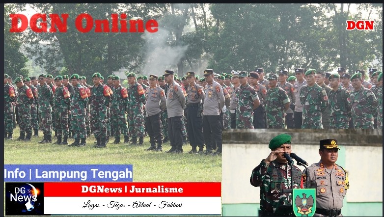 DGNews | Komandan Kodim 0411/KM Letkol Arh Rendra Febrandari Suparman,S.I.P didampingi Kapolres Lampung Tengah, AKBP Andik Purnomo Sigit, S.H., S.I.K., M.M memimpin Apel gelar pasukan dalam rangka Pengamanan VVIP kunjungan kerja Presiden RI Ir. Joko Widodo, bertempat di Lapangan Sepak Bola Transad Kampung Poncowati Kecamatan Terbanggi Besar Kabupaten Lampung Tengah, Rabu (10/7/24) pagi.