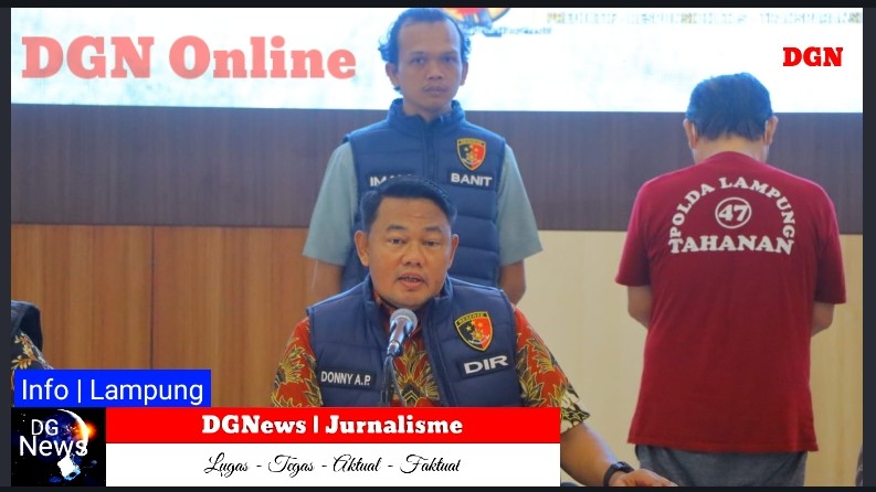 Bertempat di gedung GSG Presisi Polda Lampung Dir reskrimsus Kombes Pol Dony Arief yang di dampingi Kasubbid Penmas AKBP Rahmad Hidayat melaksanakan konfrensi pers, pada jum’at 5/7/24.