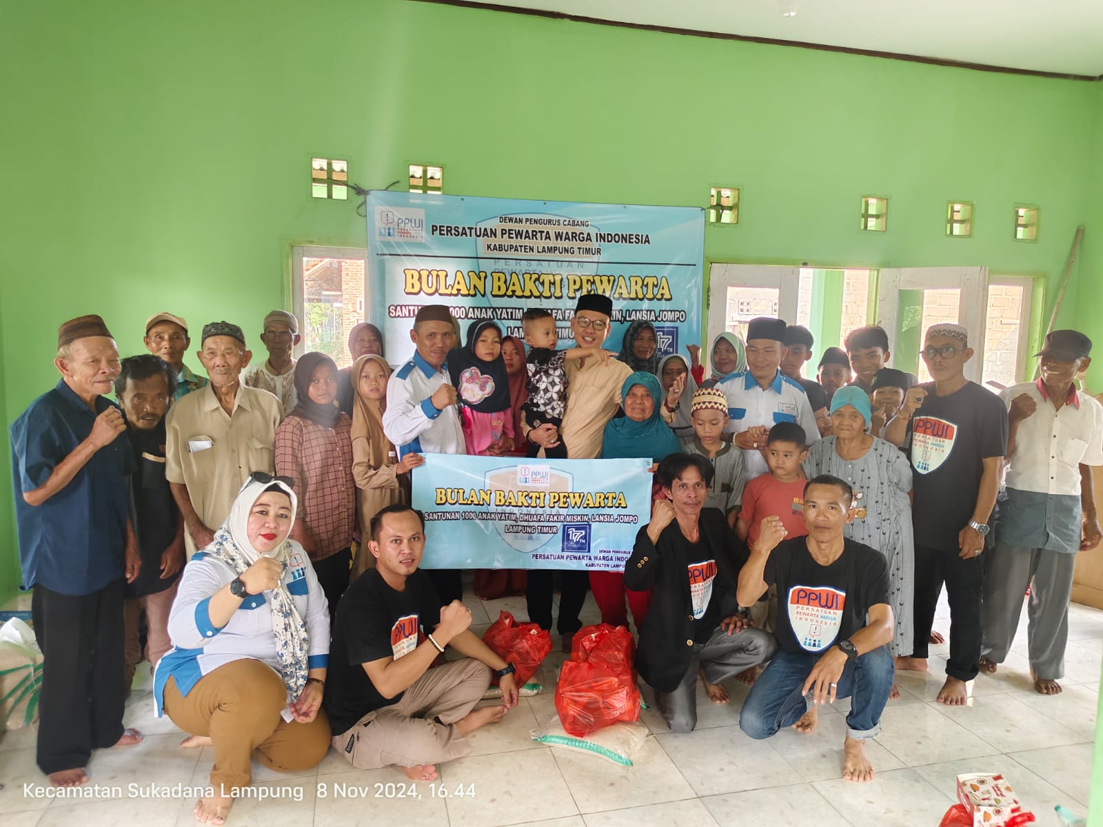 Lampung Timur | Dalam rangka menyambut Hari Ulang Tahun Persatuan Pewarta Warga Indonesia (HUT PPWI) yang ke-17 Tahun, DPC PPWI Kabupaten Lampung Timur mengadakan kegiatan sosial kemanusiaan dengan Tema “Bulan Bakti Pewarta” Santunan 1000 Anak Yatim, Fakir Miskin, Lansia jompo dhuafa. Pemberian santunan ini dilaksanakan dengan cara mengumpulkan penerima santunan secara massal dan mobile atau mendatangi dari rumah ke rumah (door to door).