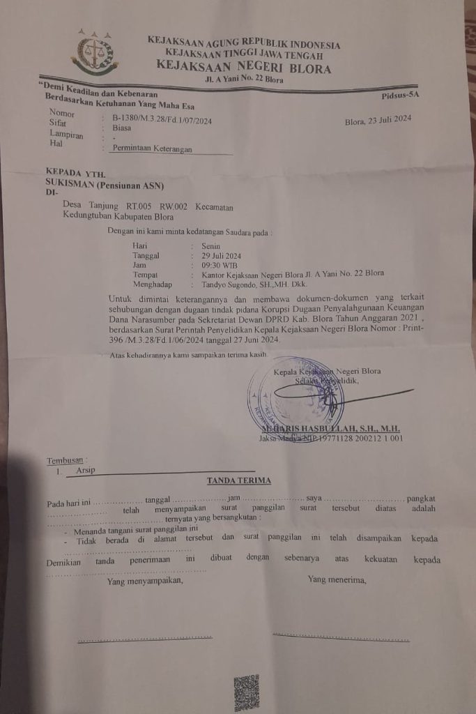 - Surat ini sebagai bukti formal bahwa laporan MPKN terhadap Dugaan Kasus Korupsi ini faktual karena ada laporan dari MPKN dan terus berjalan di Pidsus.