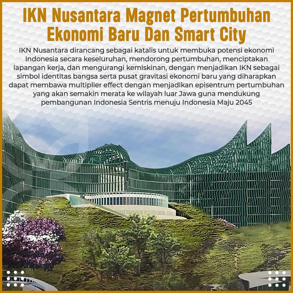 Dalam perjalannya, IKN Nusantara sejak awal dirancang sebagai katalis untuk membuka potensi ekonomi Indonesia secara keseluruhan, mendorong pertumbuhan, menciptakan lapangan kerja, dan mengurangi kemiskinan, dengan menjadikan IKN Nusantara sebagai simbol identitas bangsa serta pusat gravitasi ekonomi baru yang diharapkan dapat membawa multiplier effect dengan menjadikan episentrum pertumbuhan yang akan semakin merata ke wilayah luar Jawa guna mendukung pembangunan Indonesia Sentris menuju Indonesia Maju 2045.