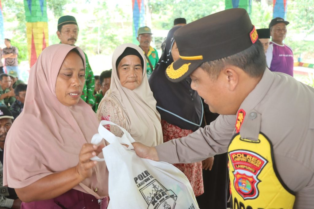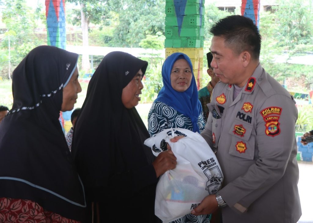 Lampung Tengah | Ditengah kesibukannya sebagai pelindung, pengayom dan pelayan serta penegak hukum, Kapolres Lampung Tengah, Polda Lampung AKBP Andik Purnomo Sigit S.H., S.I.K. M.M menyempatkan dirinya untuk berbagi kepada sesama dengan menyalurkan puluhan bantuan sosial (Bansos) kepada warga kurang mampu di Tempat Wisata Lembah Milenium yang berada di Kampung Bumi Mas Kecamatan Seputih Agung. Kabupaten Lampung Tengah. Jumat (8/3/24) siang.