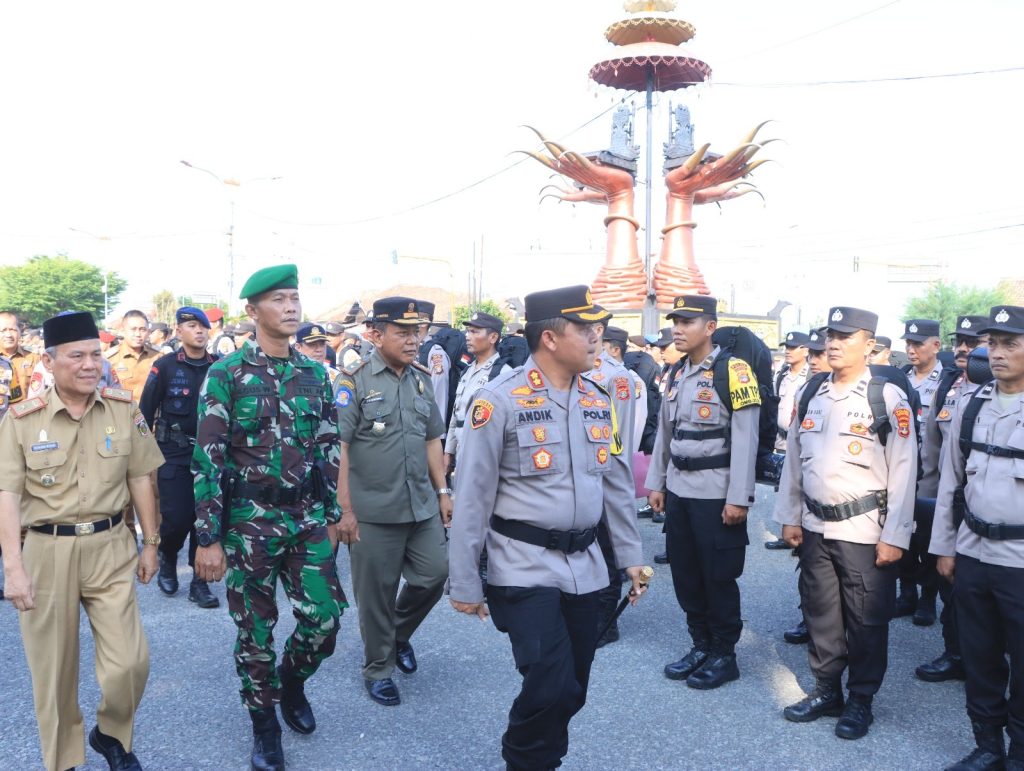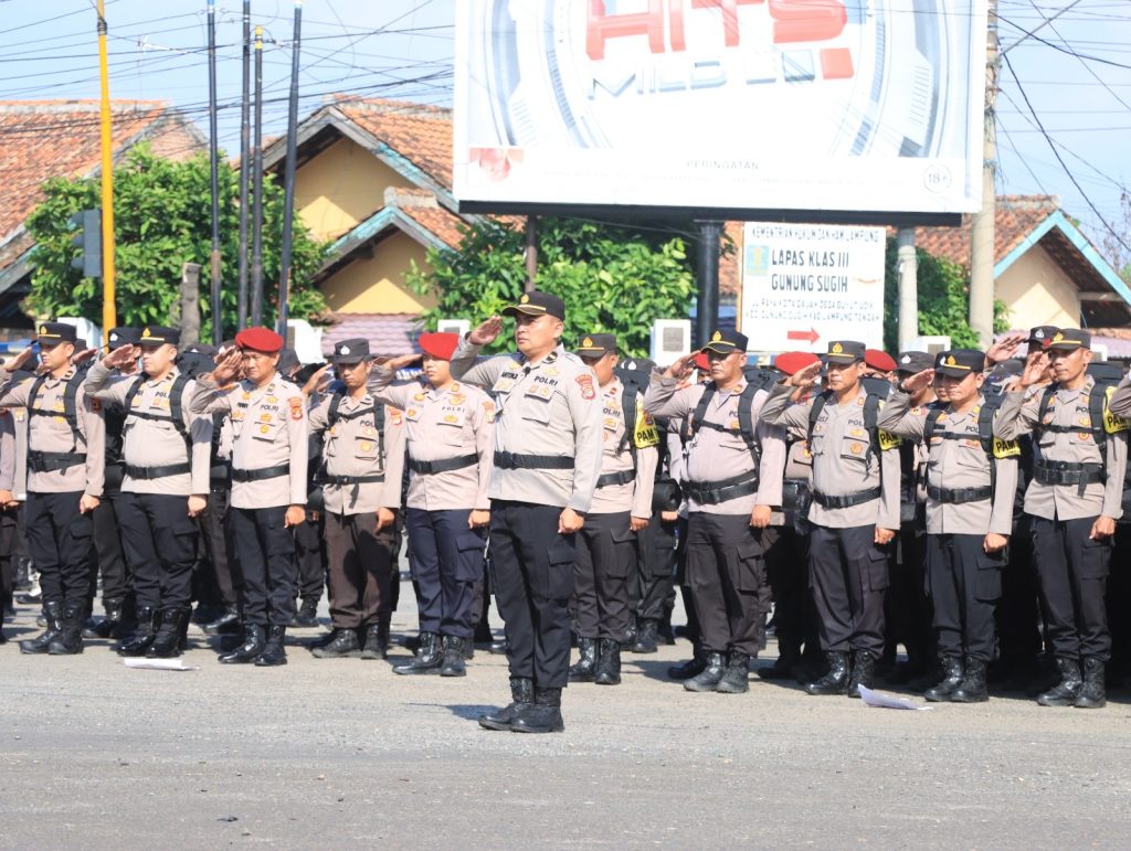 Lampung Tengah| Kapolres Lampung Tengah, Polda Lampung AKBP Andik Purnomo Sigit, S.H., S.I.K., M.M memimpin langsung apel pergeseran pasukan dalam rangka pengamanan TPS, bertempat di Tugu Pepadun Kabupaten Lampung Tengah. Senin (12/2/24)