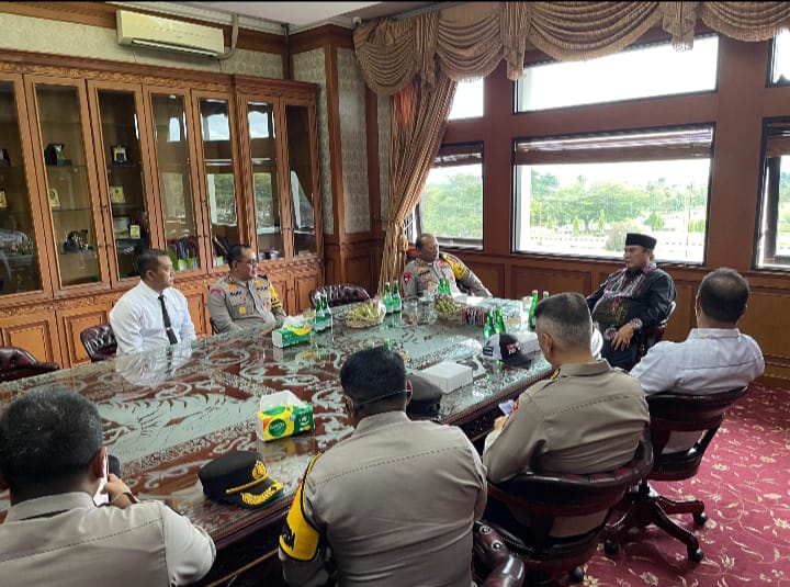 Setelah kunjungan sebelumnya di Mako Polres Kutai Barat, Kapolda tiba di Kantor Bupati sekitar pukul 10.55 WITA, disambut langsung oleh Bupati Kutai Barat, F.X. Yapan, S.H. Pertemuan ini berlangsung dalam suasana yang serius namun penuh sinergi, dengan fokus pada upaya menjaga ketertiban selama masa pemilihan.