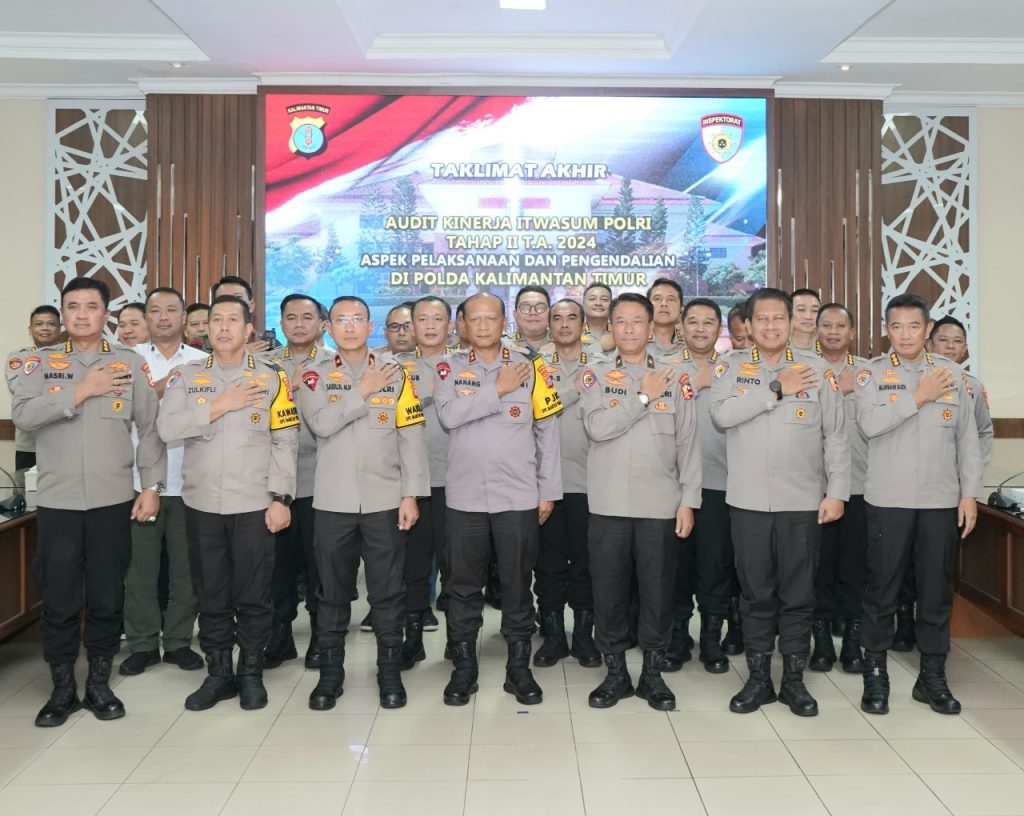 BALIKPAPAN – DGNews | Kapolda Kaltim Irjen. Pol. Drs. Nanang Avianto, M.Si., pimpin taklimat akhir audit kinerja Itwasum Polri Tahap II aspek pelaksanaan dan pengendalian TA.2024 di di ruang Rupatama Polda Kaltim, Selasa (10/9/2024).