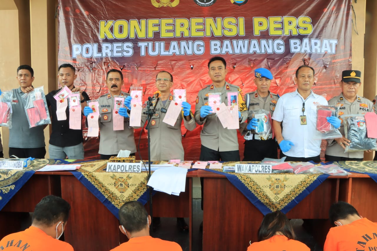 Tulang Bawang Barat| Polres Tulang Bawang Barat Polda Lampung Menggelar Konferensi Pers Akhir Tahun 2023 yang disampaikan langsung oleh Kapolres Tulang Bawang Barat AKBP Ndaru Istimawan, S.I.K. dengan didampingi oleh Waka Polres, Kabag Ops, Kasat Reskrim, Kasat Narkoba, Kabag Ren Kasat Lantas dan Kasubsi Penmas Sihumas, bertempat di mako Pores Tulang Bawang Barat, pada Sabtu (30/12/2023).