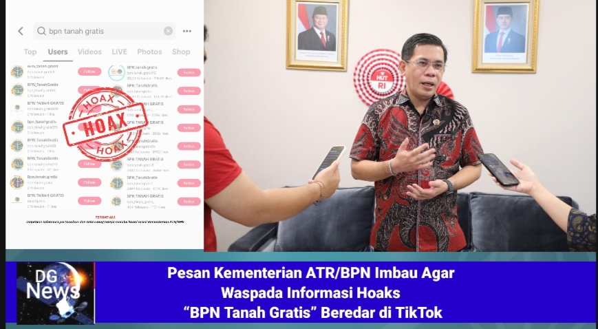 Kepala Biro Hubungan Masyarakat (Humas) dan Protokol, Harison Mocodompis, menyampaikan agar masyarakat berhati-hati terhadap akun media sosial yang tidak jelas sumbernya. “Kami melihat banyak sekali akun TikTok @bpn_tanahgratis beredar. Untuk itu, masyarakat diimbau untuk tidak terpengaruh dengan akun media sosial tidak resmi yang menyebarkan klaim seperti ‘BPN Tanah Gratis’. Informasi dan layanan resmi hanya dapat diperoleh melalui kanal resmi Kementerian, yakni situs atrbpn.go.id dan akun media sosial resmi kami,” tegasnya saat ditemui di Kantor Kementerian ATR/BPN, Jakarta, Selasa (19/08/2025).