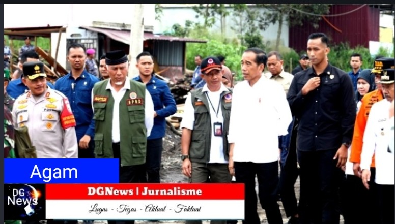 AGAM | Kepala Badan Nasional Penanggulangan Bencana (BNPB) Letjen TNI Suharyanto, S. Sos., M.M., mendampingi Presiden Republik Indonesia Ir. Joko Widodo meninjau lokasi terdampak banjir lahar hujan atau galodo di wilayah Kabupaten Agam, Sumatera Barat pada Selasa (21/5).