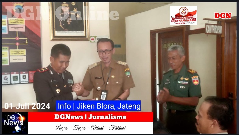 Blora – DGNews | Dalam rangka HUT Bhayangkara yang ke – 78, Camat Jiken Kecamatan Jiken Kabupaten Blora  turut hadiri acara peringatan HUT Bhayangkara di Kantor Polsek Jiken. Tampak hadir dalam acara tersebut Camat Jiken Joko Lelono SE,MM, Kapolsek Jiken Iptu Zaenul Arifin,SH,MH, Danramil Jiken: Kapten Inf Sugiyanto, Kepala UPTD Puskesmas Jiken: Apt, Dadang Kun Septianto, S,Farm, TKSK, PKH dan staf². Senin, (01/07/2024).