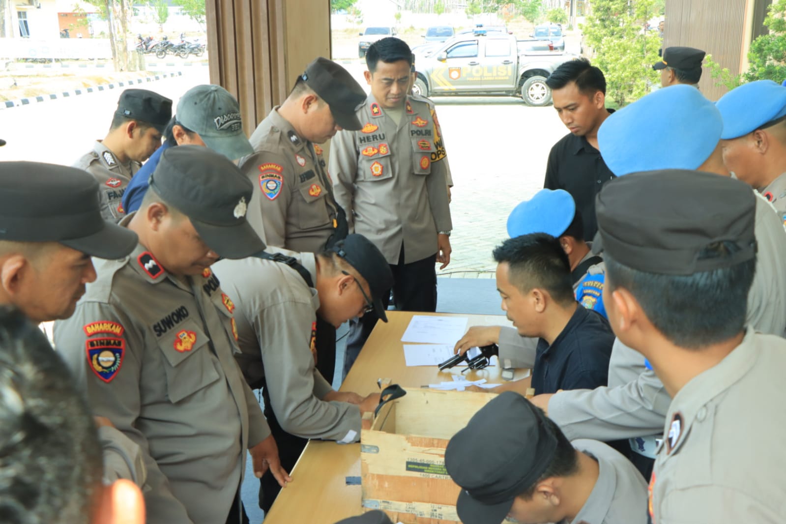 Tulang Bawang Barat—-Menjelang Pemilu 2024 mendatang, Kapolres Tulang Bawang Barat AKBP Ndaru Istimawan, S.IK, yang diwakili Waka Polres Kompol Heru Sulistyananto, S.H, M.H, melakukan pengecekan fisik senjata api (senpi) dan kendaraan dinas Polri yang digunakan oleh personil Polres Tulang Bawang Barat untuk mendukung pelaksanaan tugas, di halaman Mapolres Tulang Bawang Barat. Kamis (9/11/2023)