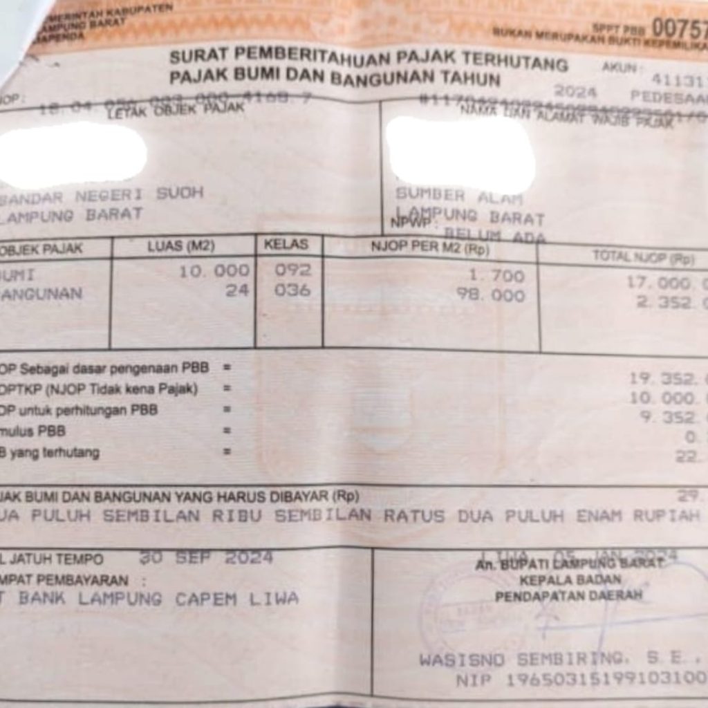 Lampung Barat | Komandan Distrik Militer (DANDIM) 0422/L.B Lekol Inf Rinto Wijaya,S.A.P.,M.I.Pol.,M.Han mempertanyakan terkait adanya Bukti Surat Pembayaran Penarikan Pajak Bumi Bangunan ( SPPT PBB ) di Kecamatan Bandar Negeri Suoh (BNS) Kabupaten Lampung Barat. (7/3/2025).