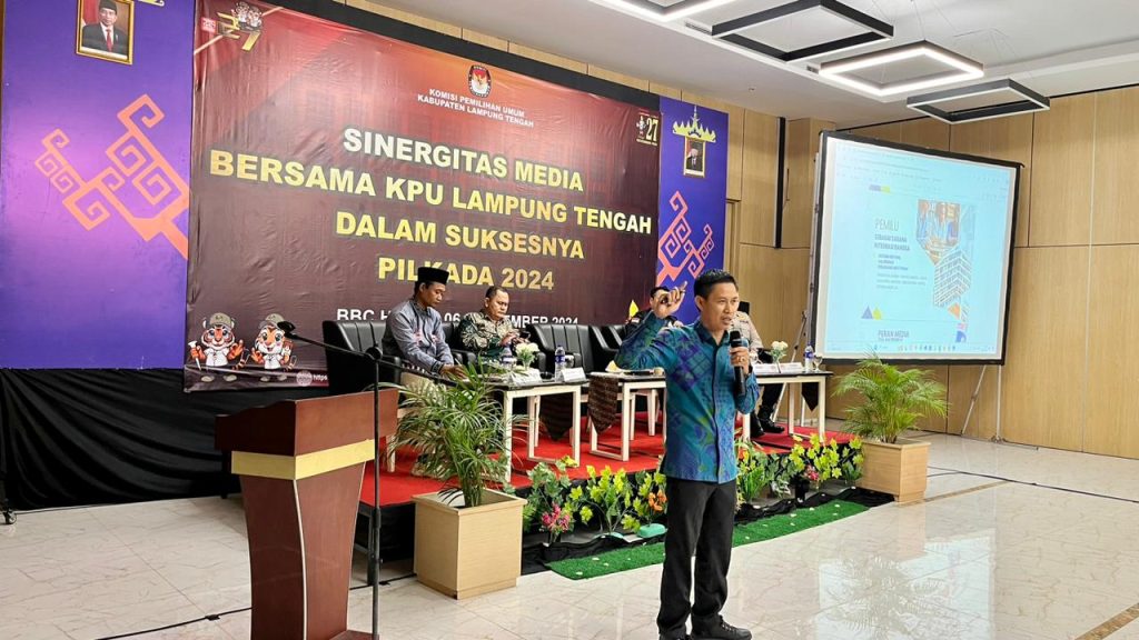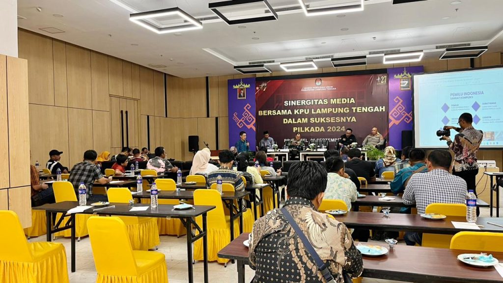 Lamteng – DGNews | Penyelenggaraan Pemilu pilkada 2014 serentak yang akan dilaksanakan pada tanggal 27 Nopember 2024 menjadi hajad besar demokrasi Pilkada 2024 secara nasional. Gelar acara Forum Group Discussion (FGD) yang diselenggarakan Komisi Pemilihan Umum (KPU) Lampung Tengah di Hotel BBC Bandarjaya Kec. Terbanggi besar dihadiri oleh para Media Online, Cetak dan TV di Kabupaten Lampung Tengah serta nara sumber dari KPU Provinsi Lampung, Polres Lampung Tengah, Diskominfotik Lampung Tengah dan dewan pembina/penasehat PWRI Lampung Tengah. Jum’at (06/09/24).
