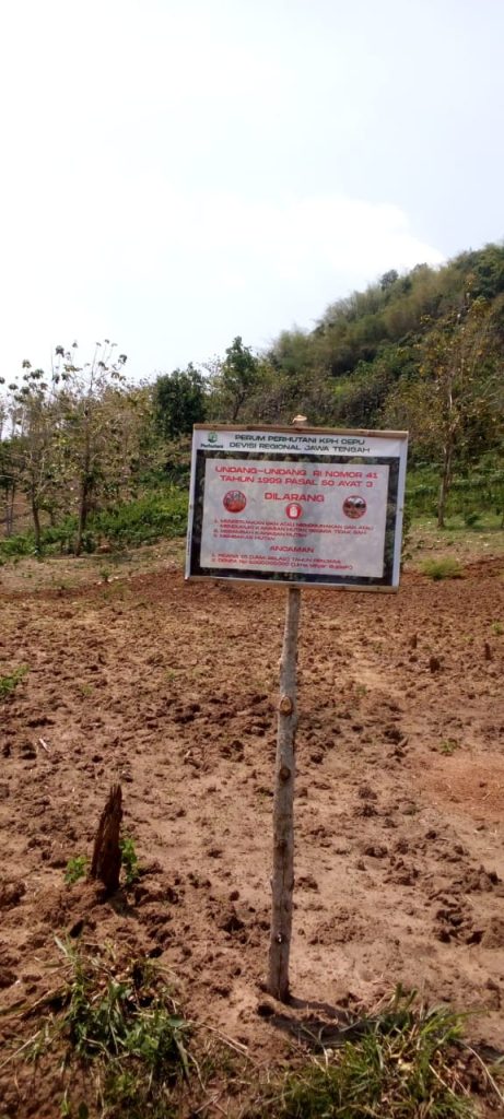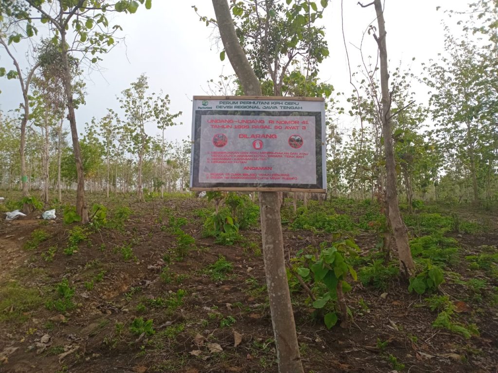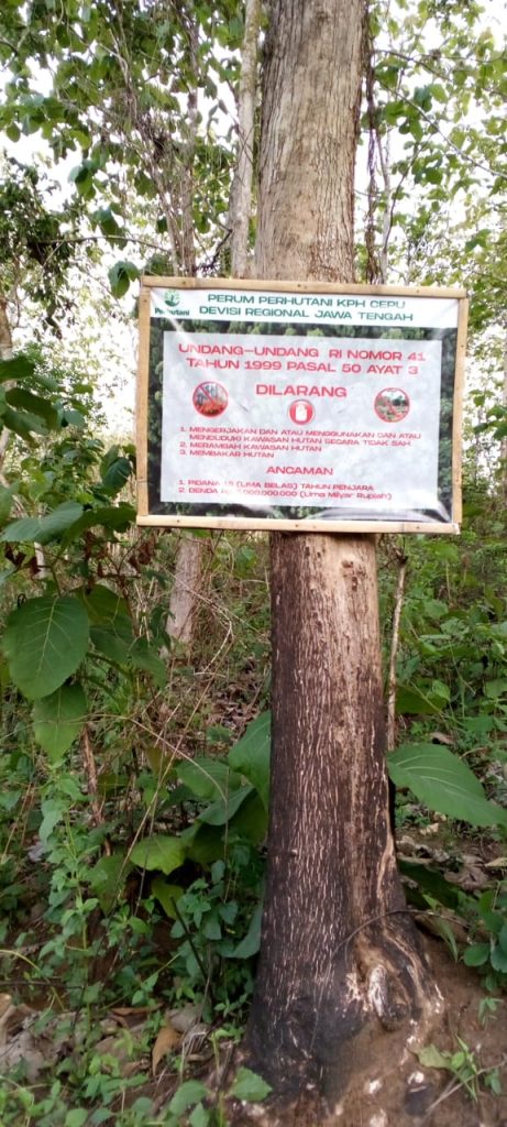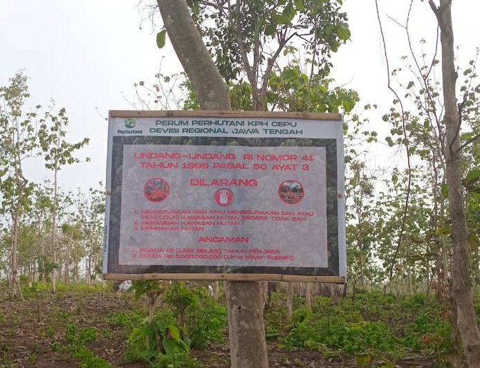 Perhutani KPH Cepu juga memasang papan peringatan di berbagai titik di hutan Ketringan yang mengutip Undang-Undang Nomor 41 Tahun 1999 tentang Kehutanan.