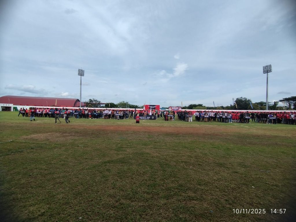 KUTAI BARAT – Gelora semangat olahraga kembali menyala di Bumi Tanaa Purai Ngeriman. Turnamen Bupati Cup 2025 resmi dibuka oleh Wakil Bupati Kutai Barat, H. Nanang Adriani, S.PKP., M.Si, mewakili Bupati Kutai Barat Frederick Edwin, di Stadion Swalas Gunaq, Kecamatan Barong Tongkok, Senin (10/11/2025).